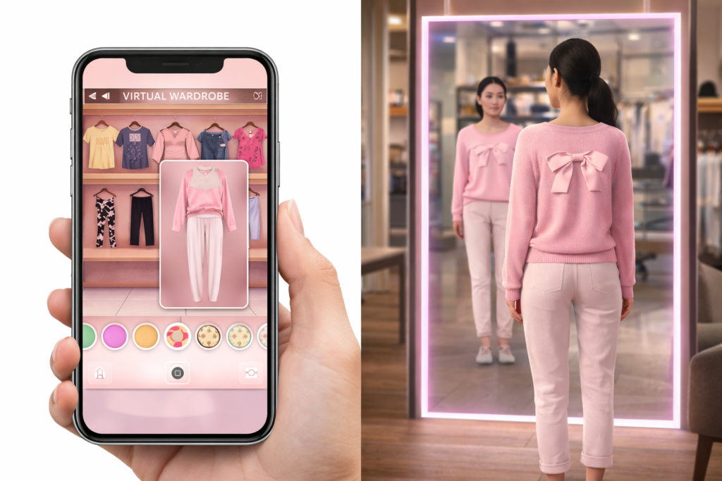 Augmented reality mirrors—both in-store and mobile-based—allow customers to explore looks and combinations without changing outfits physically, creating a digital fitting environment that supports personalization and discovery.
