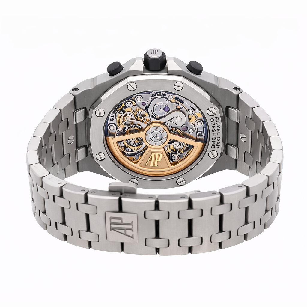 The caseback is another important detail. Many genuine Audemars Piguet watches—especially Royal Oak models—feature a transparent caseback that reveals the finely finished movement inside, complete with brand engravings and serial markings. On fake watches, the caseback may be solid, poorly made, or, if transparent, reveal a low-quality movement with minimal decoration.